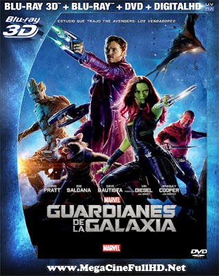 Guardianes De La Galaxia (2014) Full 3D SBS Latino Un aventurero espacial se convierte en la presa de unos cazadores de tesoros después de que él roba el orbe de un villano traicionero, y cuando descubre su poder, él debe encontrar la forma de unir a unos rivales para salvar al universo.