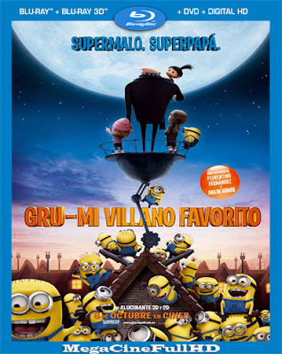 Mi Villano Favorito (2010) Full HD 1080P Latino Gru (voz de Steve Carell) es un hombre deplorable que planea el acto criminal más increíble de la Historia: robar la Luna. Incitado por una madre malvada (voz de Julie Andrews), sólo encontrará un obstáculo en su camino: tres niñas huérfanas a las que tendá que cuidar temporalmente.